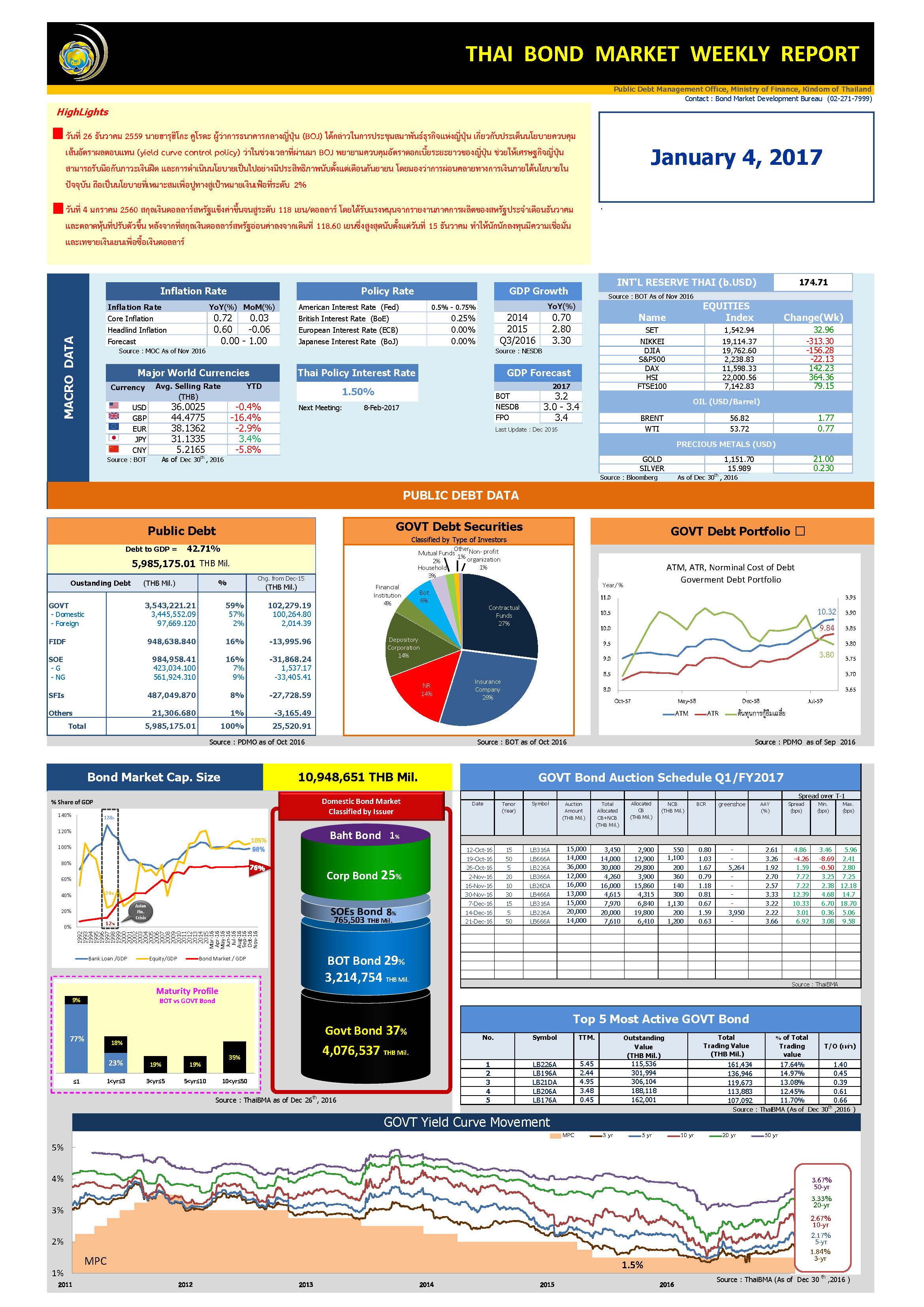 Thai Bond Market Update 4 January 2017