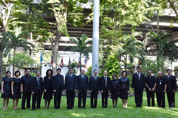 On September 28, 2017 Mr. Suwit Rojanavanich, Director-General, Ms. Pimpen Ladpli, Deputy Director General, together with PDMO executives and staff joined together to sing the national anthem and celebrate 100th year anniversary of Thai national flag at the flagpole, Ministry of Finance.