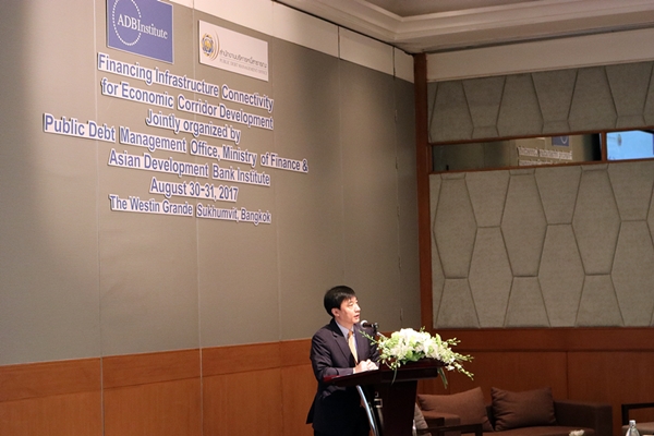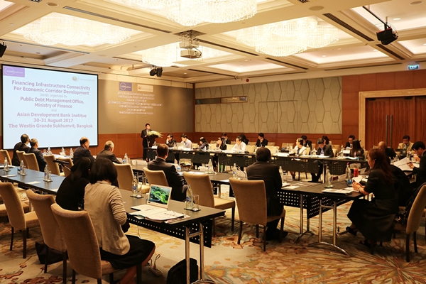 Mr. Theeraj Athanavanich, Bond Market Advisor, Public Debt Management Office (PDMO), Ministry of Finance, presided over the Financing Infrastructure Connectivity for Economic Corridor Development Meeting.The Meeting was jointly organized by PDMO and Asian Development Bank Institute (ADBI). There were Mr. Chul Ju Kim, Deputy Dean of ADBI, and participants from Southeast Asia (Cambodia, Indonesia, Lao PDR, Malaysia, Myanmar, Philippines, Thailand, and Viet Nam) as well as experts in economic corridor development and infrastructure connectivity attended this meeting on 30 – 31 August, 2017 at The Westin Grande Sukhumvit Bangkok, Thailand.