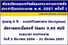 ¾Ñ¹¸ºÑµÃÍÍÁ·ÃѾÂì¢Í§¡ÃзÃǧ¡ÒäÅѧ»ÃШӻէº»ÃÐÁÒ³ ¾.È. 2557 ¤ÃÑé§·Õè 1 ÃØè¹ÍÒÂØ 3 »Õ – ẺäÃé㺵ÃÒÊÒà (Scripless) ÍѵÃÒ´Í¡àºÕ餧·Õè ÃéÍÂÅÐ 3.85 µèÍ»Õ Ê¶Ò¹·Õè¨èÒ˹èÒ à¤Ò¹ìàµÍÃìáÅÐà¤Ã×èͧ ATM ¢Í§ 4 ¸¹Ò¤ÒõÑÇá·¹¨èÒ˹èÒ (¸.¡ÃØ§à·¾Ï ¸.¡Ãاä·ÂÏ ¸...