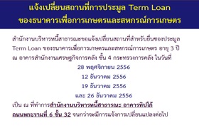 ÍèÒ¹ÃÒÂÅÐàÍÕ´à¾ÔèÁàµÔÁá¨é§à»ÅÕè¹ʶҹ·Õè¡ÒûÃÐÁÙÅ Term Loan ¢Í§¸¹Ò¤ÒÃà¾×èÍ¡ÒÃà¡ÉµÃáÅÐÊˡóìà¾×èÍ¡ÒÃà¡ÉµÃ