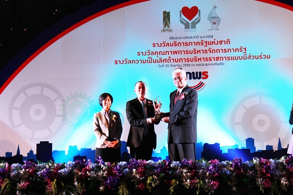 ¹ÒÂÊØÇÔª âè¹ÇÒ¹Ôª ¼ÙéÍӹǡÒÃÊӹѡ§Ò¹ºÃÔËÒÃ˹ÕéÊÒ¸ÒóРà¢éÒÃѺÁͺÃÒ§ÇÑŤسÀÒ¾¡ÒúÃÔËÒèѴ¡ÒÃÀÒ¤ÃѰ (PMQA) »ÃÐ¨Ó»Õ ¾.È. 2558 ËÁÇ´ 2 ´éÒ¹¡ÒÃÇÒ§á¼¹ÂØ·¸ÈÒʵÃìáÅСÒÃÊ×èÍÊÒÃà¾×è͹Óä»ÊÙè¡Òû¯ÔºÑµÔ ã¹¾Ô¸ÕÁͺÃÒ§ÇÑÅ»ÃÐ¨Ó»Õ ¾.È. 2558 ³ ËÍ»ÃЪØÁ¡Í§·Ñ¾àÃ×Í àÁ×èÍÇѹ·Õè 25 ¡Ñ¹ÂÒ¹ 2558